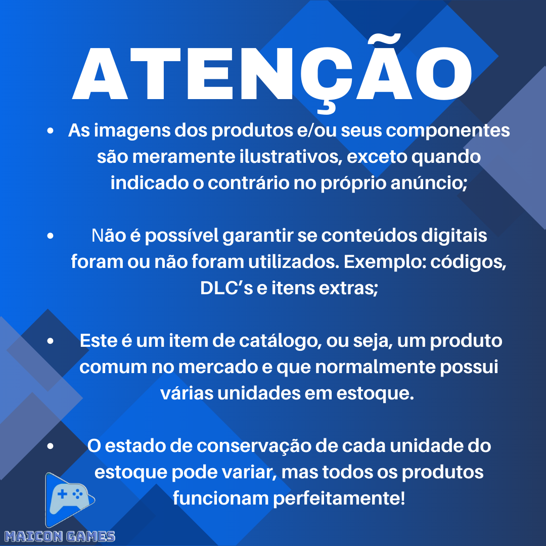 2- Não é possível garantir se conteúdos digitais foram ou não foram utilizados. Exemplo: códigos, DLC’s e itens extras;